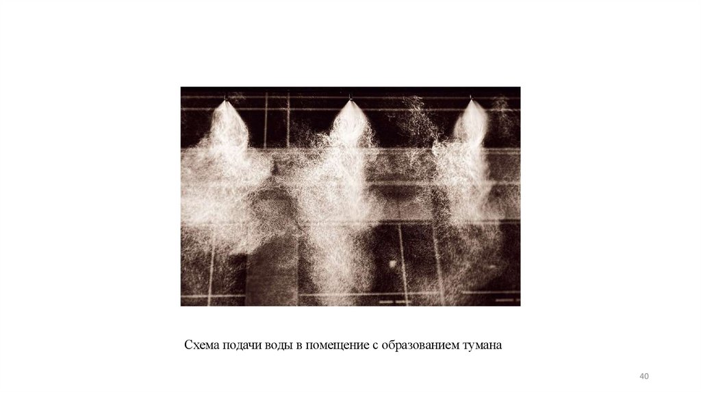 разбрызгивании воды достигается весьма развитая её поверхность, вступающая в контакт с воздухом. Так, при