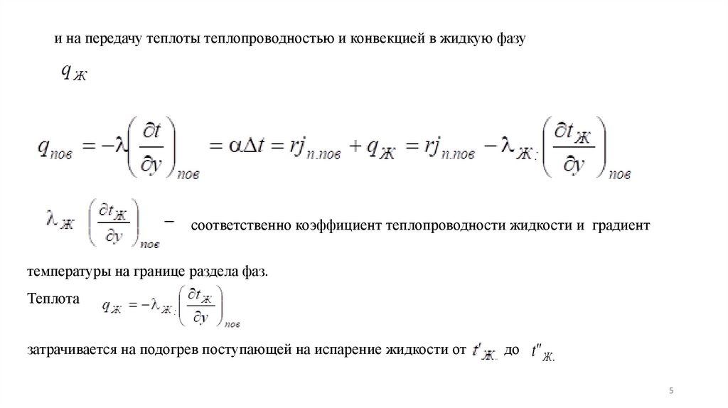 и на передачу теплоты теплопроводностью и конвекцией в жидкую фазусоответственно коэффициент теплопроводности жидкости и градиент