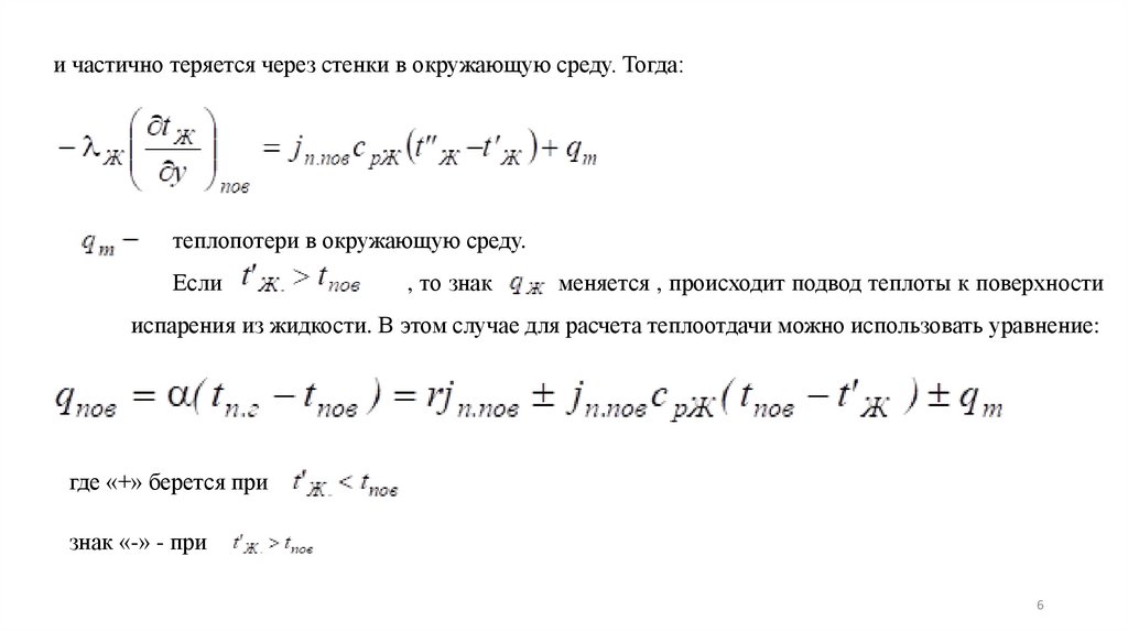 и частично теряется через стенки в окружающую среду. Тогда:теплопотери в окружающую среду.