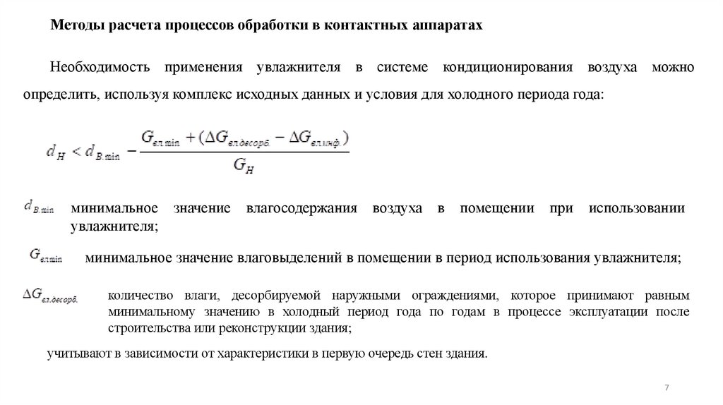 Методы расчета процессов обработки в контактных аппаратахНеобходимость применения увлажнителя в системе кондиционирования воздуха можно