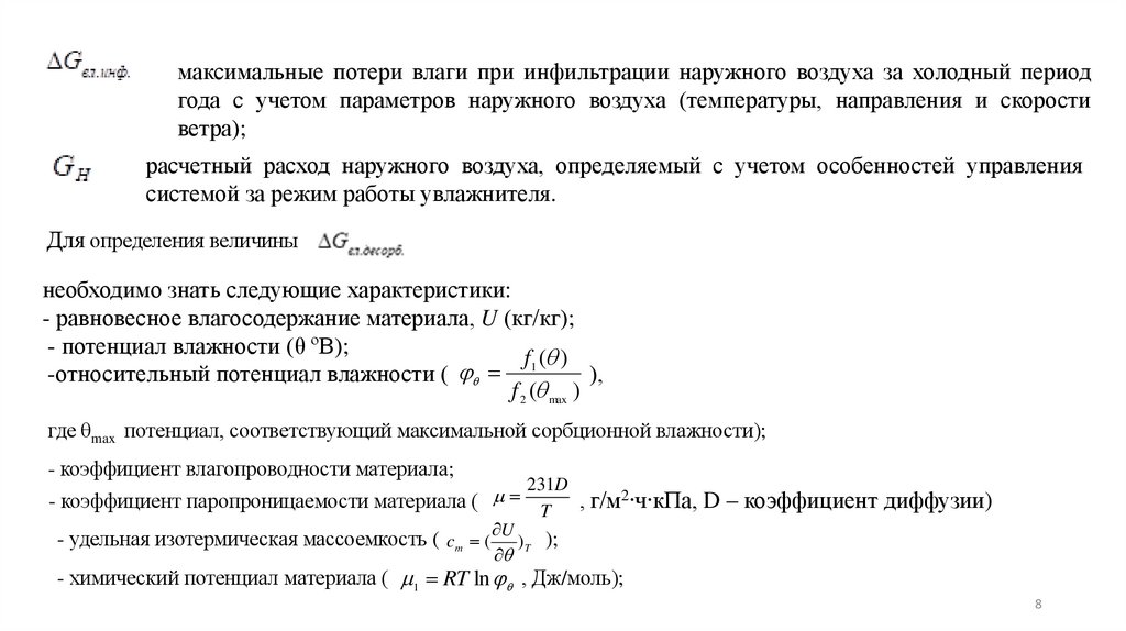 максимальные потери влаги при инфильтрации наружного воздуха за холодный периодгода с учетом параметров наружного воздуха (температуры, направления и скорости