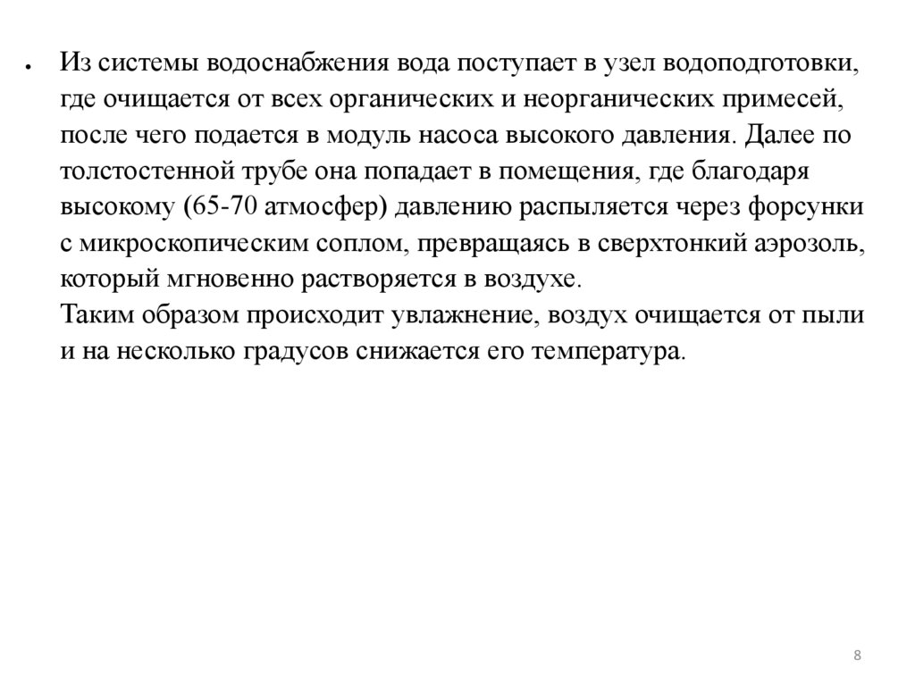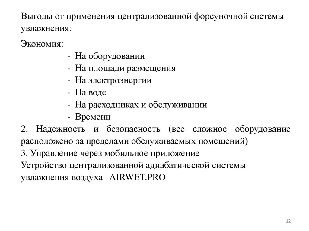 Выгоды от применения централизованной форсуночной системыувлажнения: