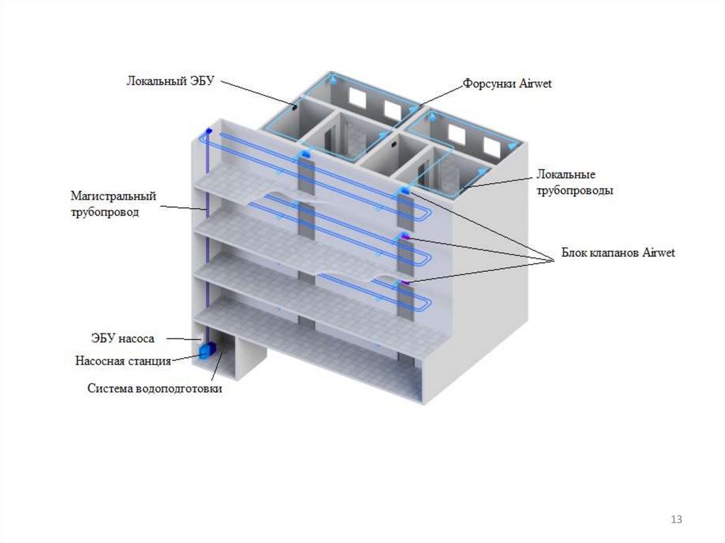 Любая система состоит из центрального оборудования (длявысоконапорных систем - это насосная станция нужной