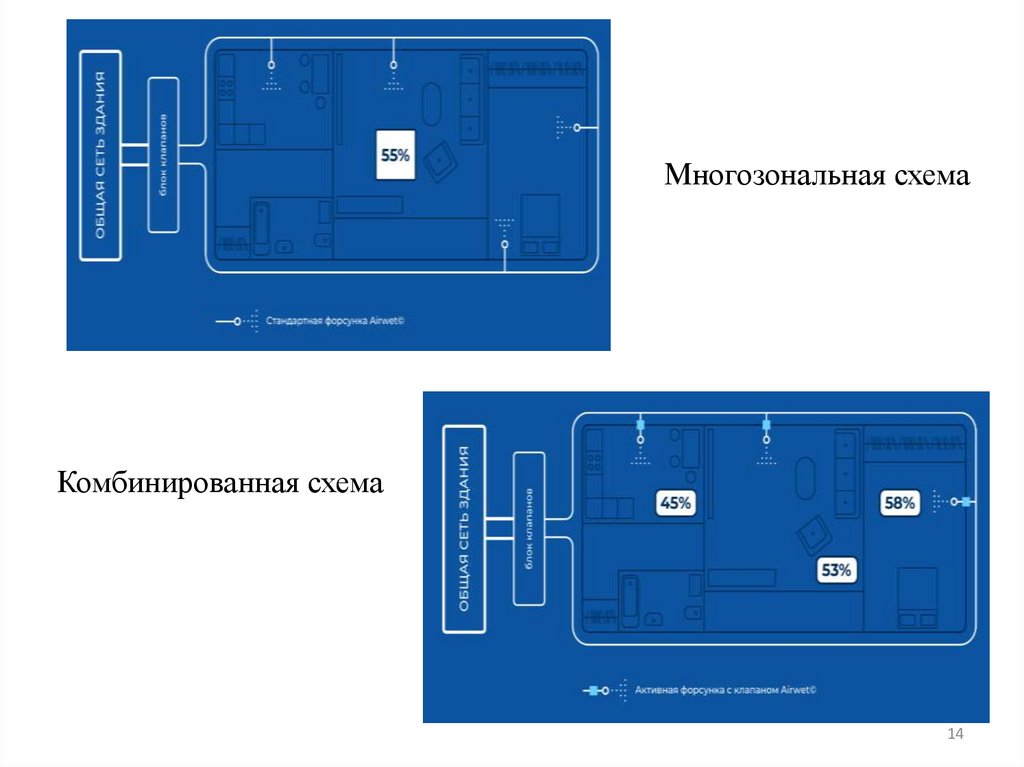 уровень влажности в каждой обслуживаемой зоне отдельно,