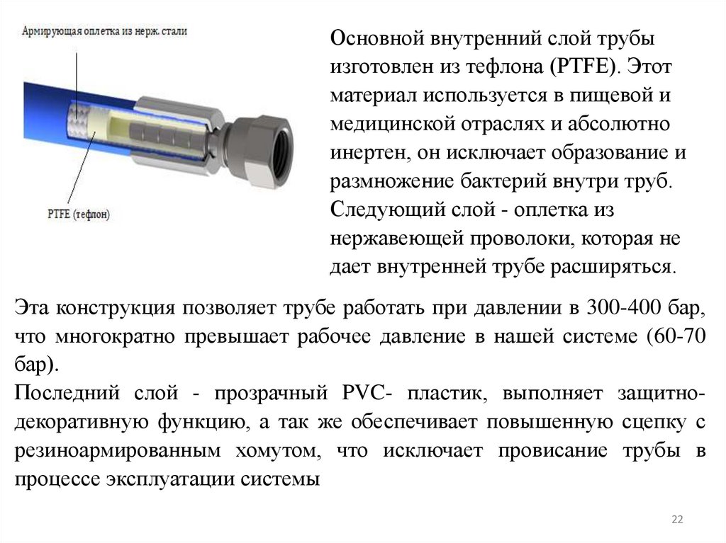 Основной внутренний слой трубыизготовлен из тефлона (PTFE). Этот