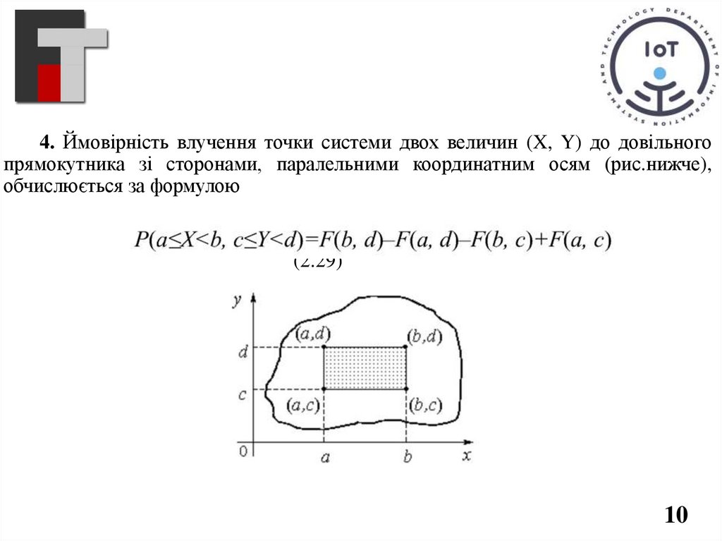 4. Ймовірність влучення точки системи двох величин (X, Y) до довільногопрямокутника зі сторонами, паралельними координатним осям (рис.нижче),