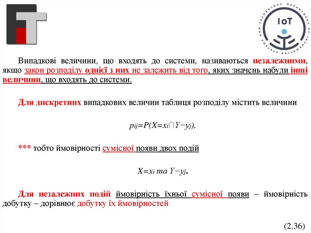 системи, і ймовірності того, що випадкові величини приймуть одночасно
