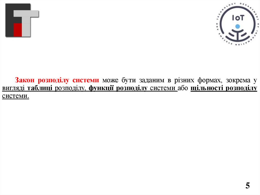 Закон розподілу системи може бути заданим в різних формах, зокрема увигляді таблиці розподілу, функції розподілу системи або щільності розподілу