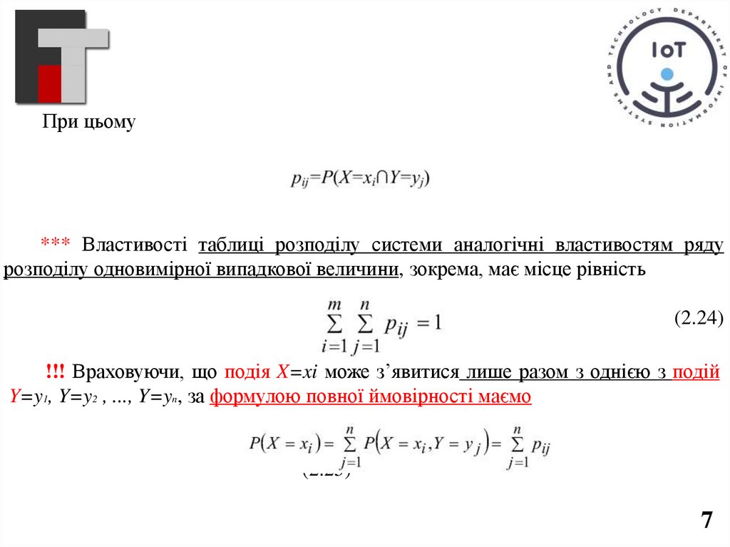 При цьому*** Властивості таблиці розподілу системи аналогічні властивостям ряду