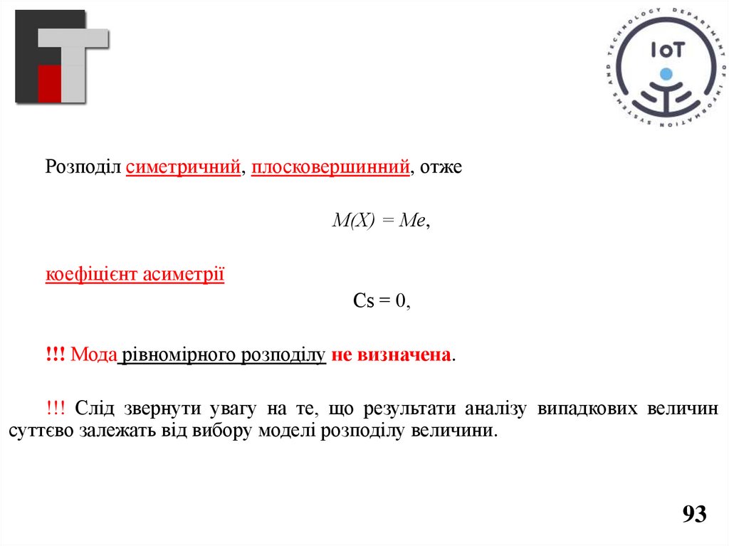 Розподіл симетричний, плосковершинний, отжеМ(Х) = Ме,