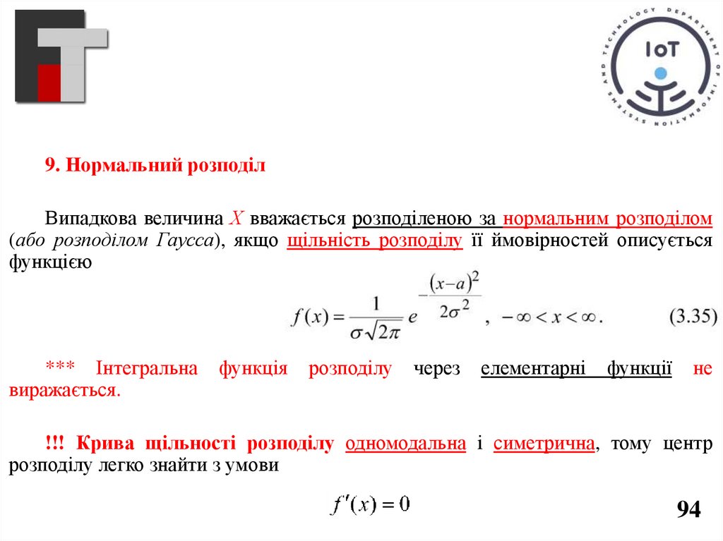9. Нормальний розподілВипадкова величина Х вважається розподіленою за нормальним розподілом