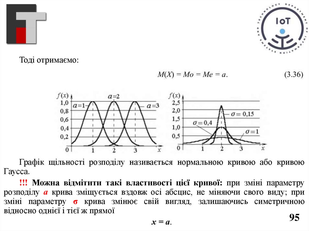 Тоді отримаємо:Графік щільності розподілу називається нормальною кривою або кривою