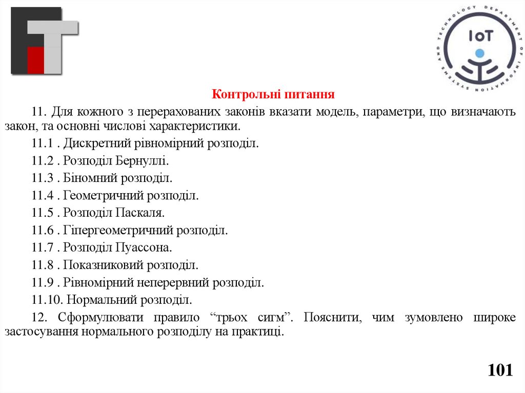 Контрольні питання11. Для кожного з перерахованих законів вказати модель, параметри, що визначають