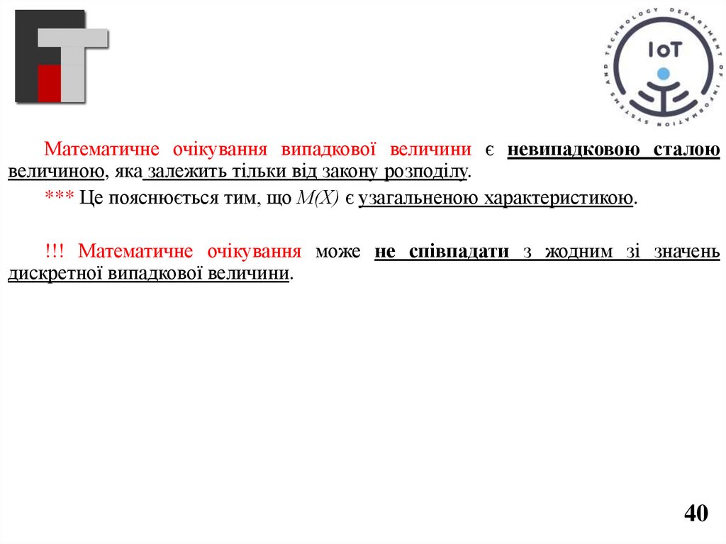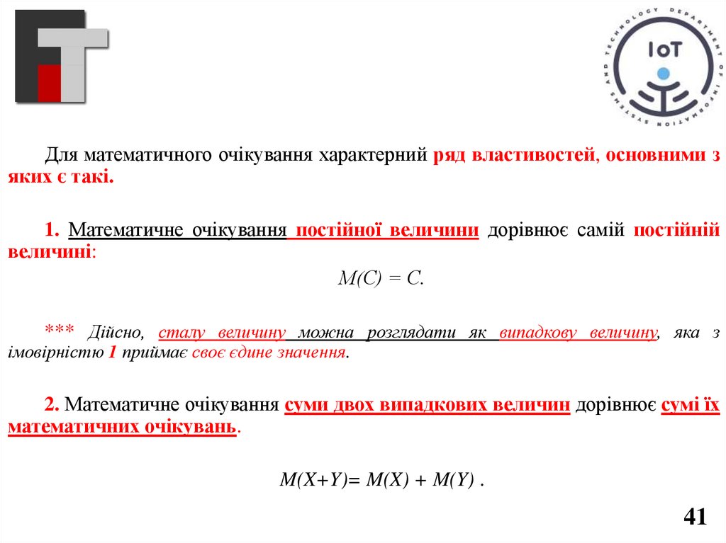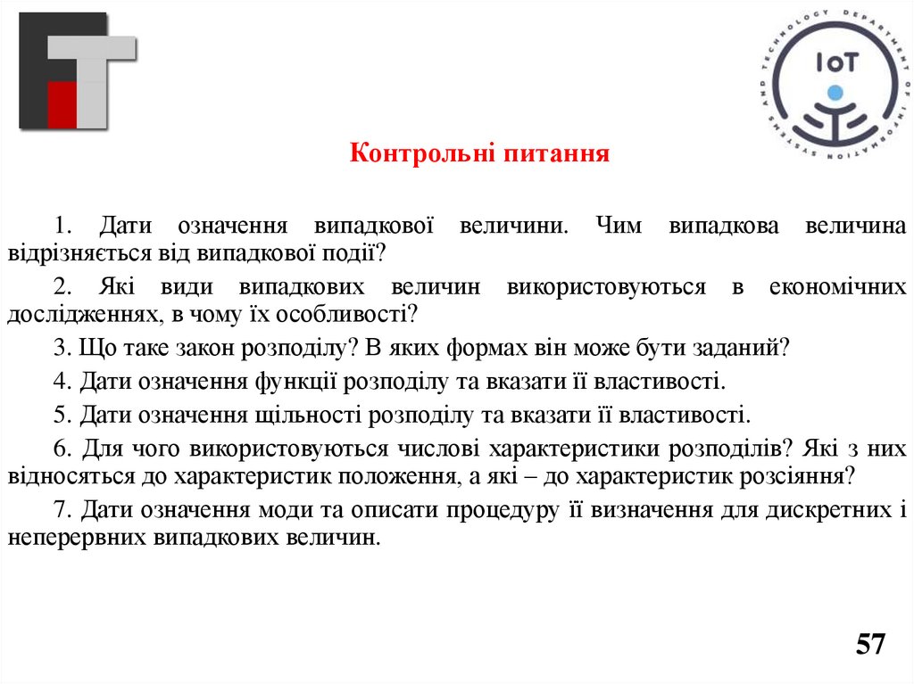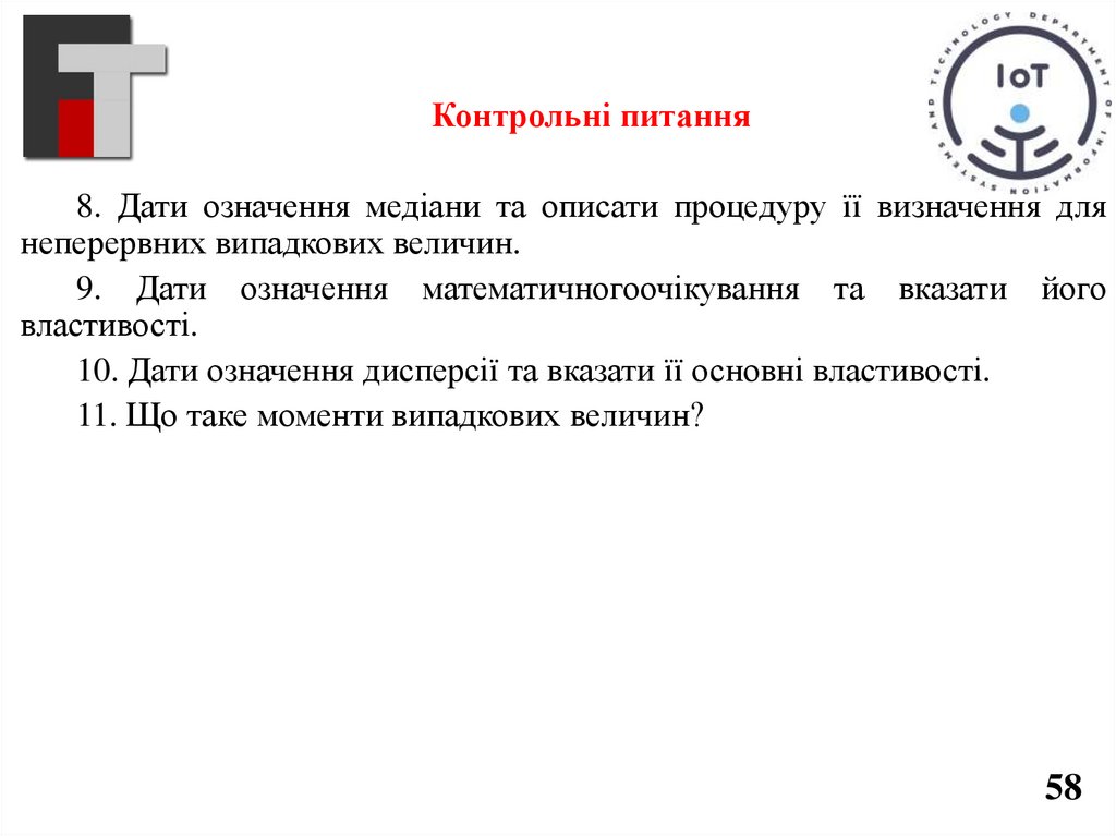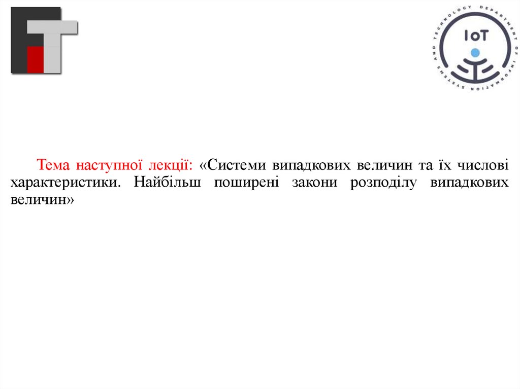 Тема наступної лекції: «Системи випадкових величин та їх числовіхарактеристики. Найбільш поширені закони розподілу випадкових
