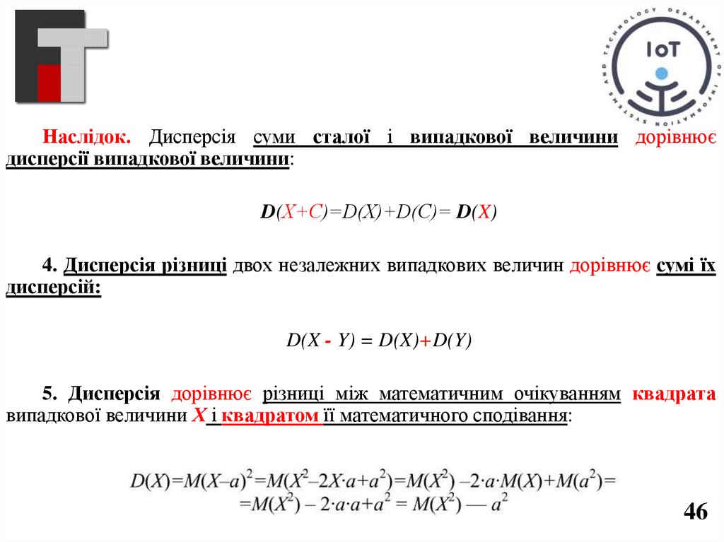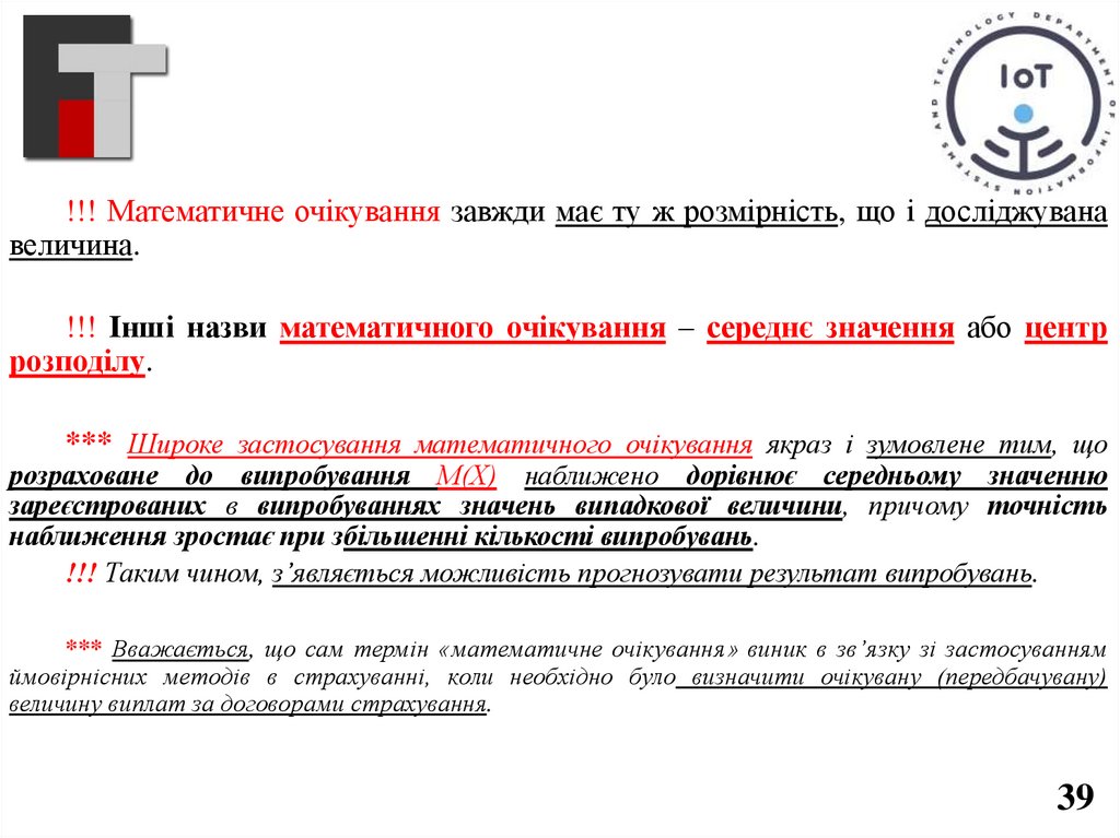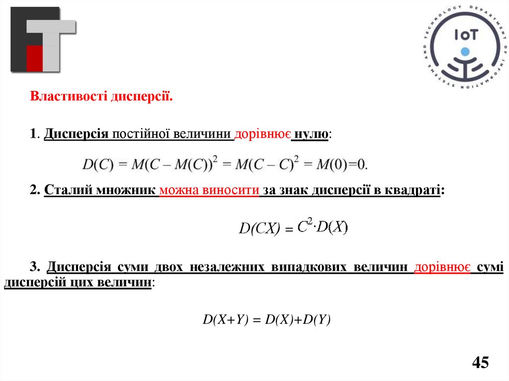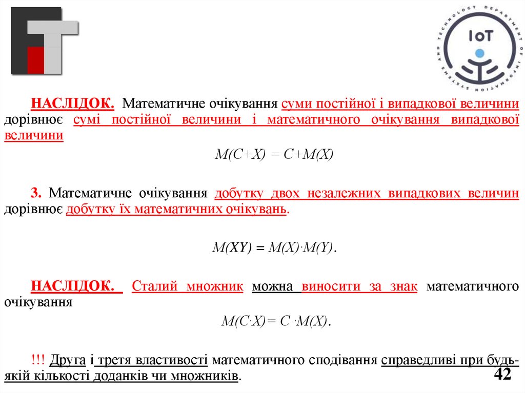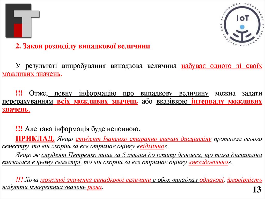 Тема наступної лекції: «Системи випадкових величин та їх числовіхарактеристики. Найбільш поширені закони розподілу випадкових