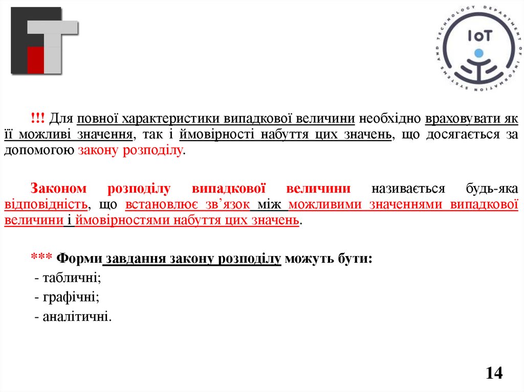 !!! Отже, певну інформацію про випадкову величину можна задати