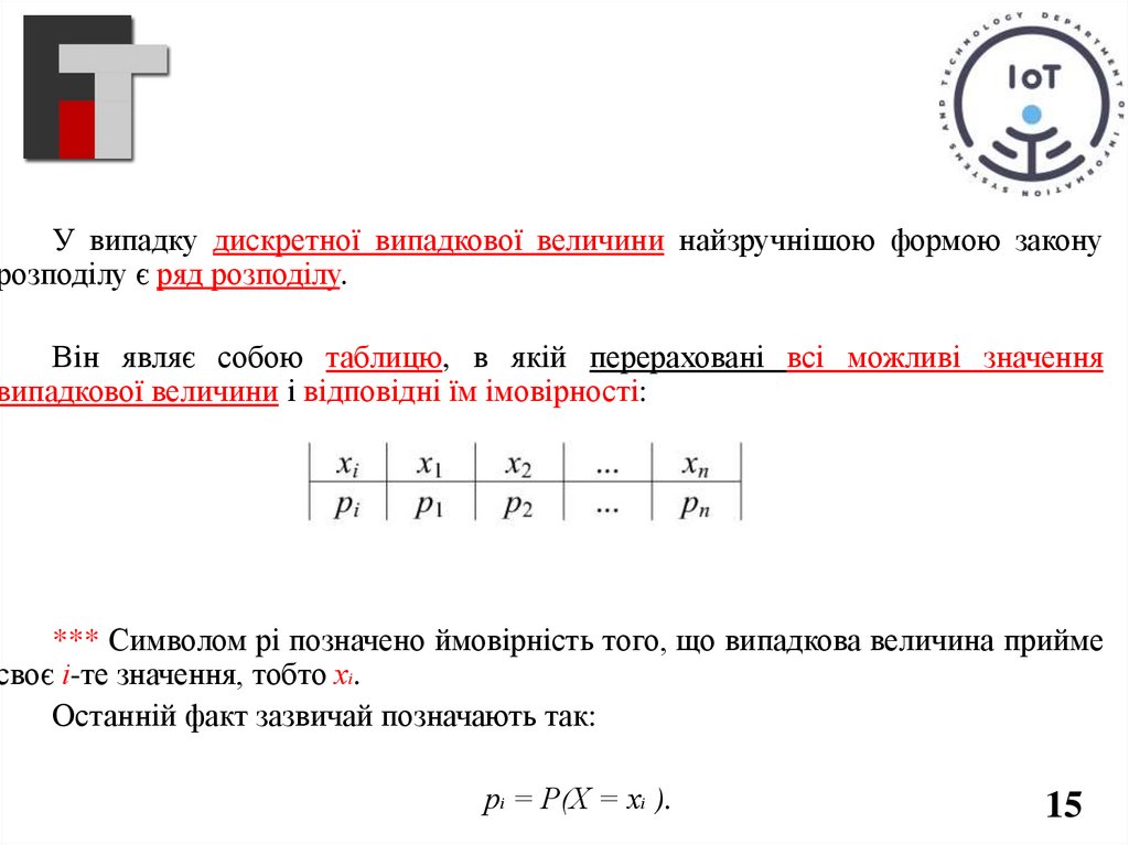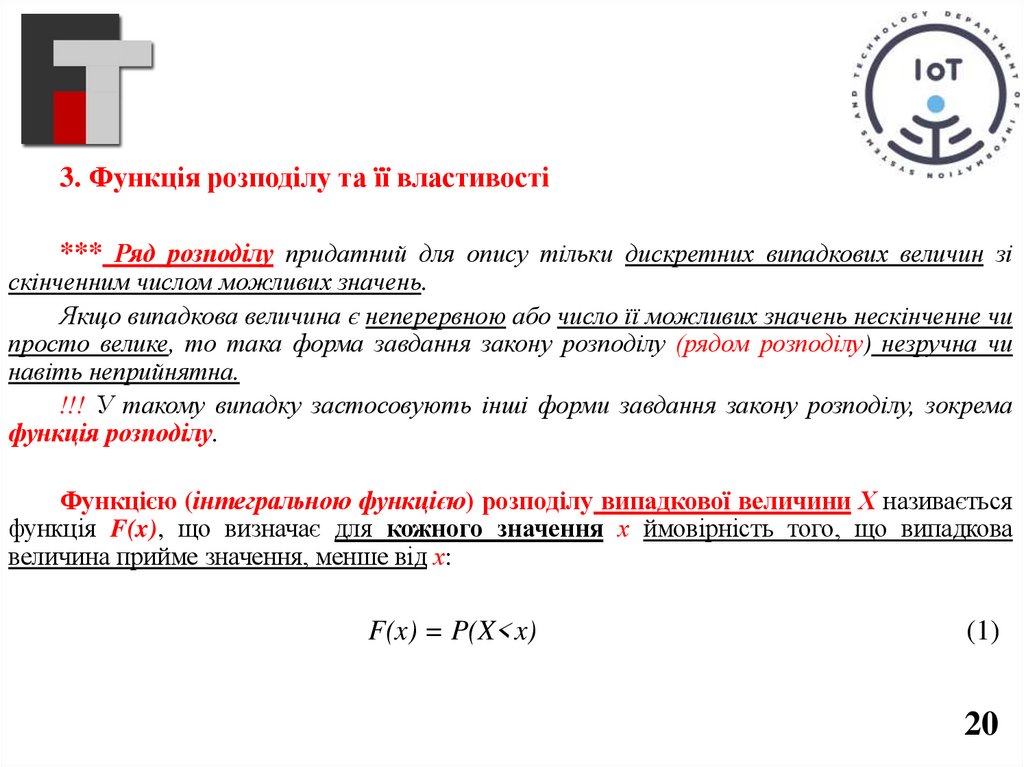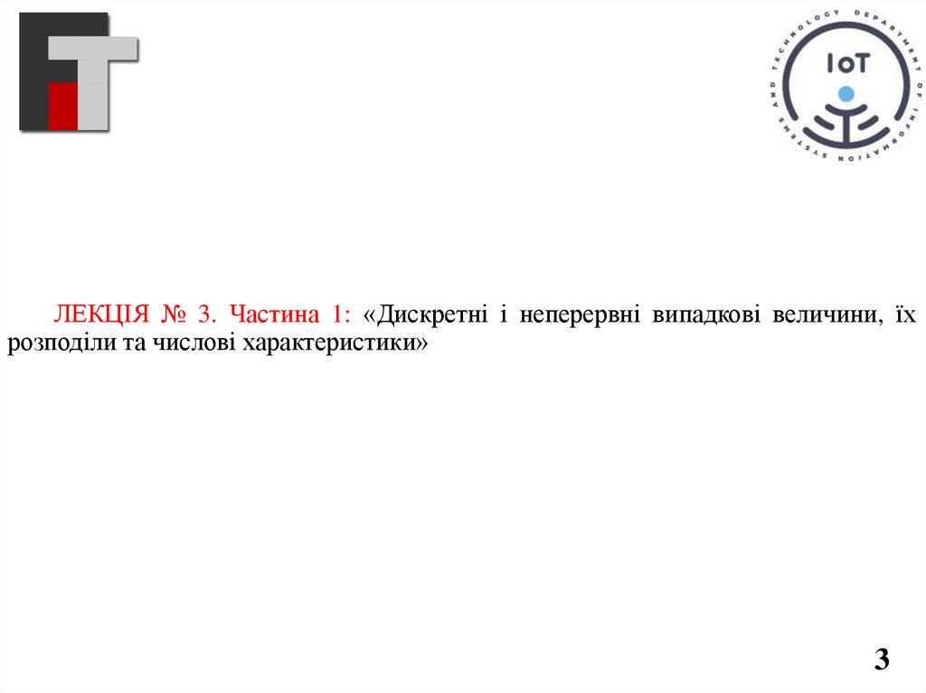 ЛЕКЦІЯ № 3. Частина 1: «Дискретні і неперервні випадкові величини, їхрозподіли та числові характеристики»