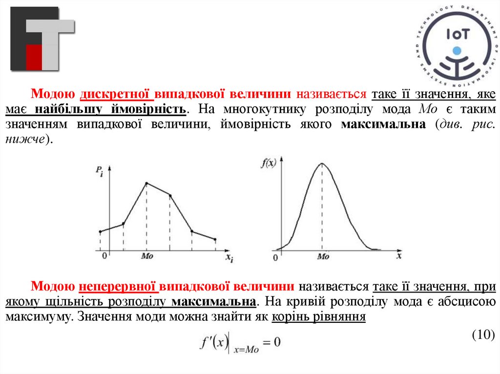7. Дати означення моди та описати процедуру її визначення для дискретних і