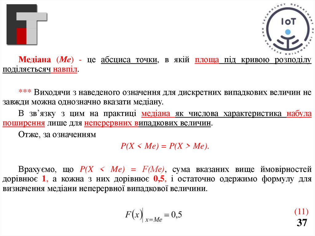 Контрольні питання8. Дати означення медіани та описати процедуру її визначення для