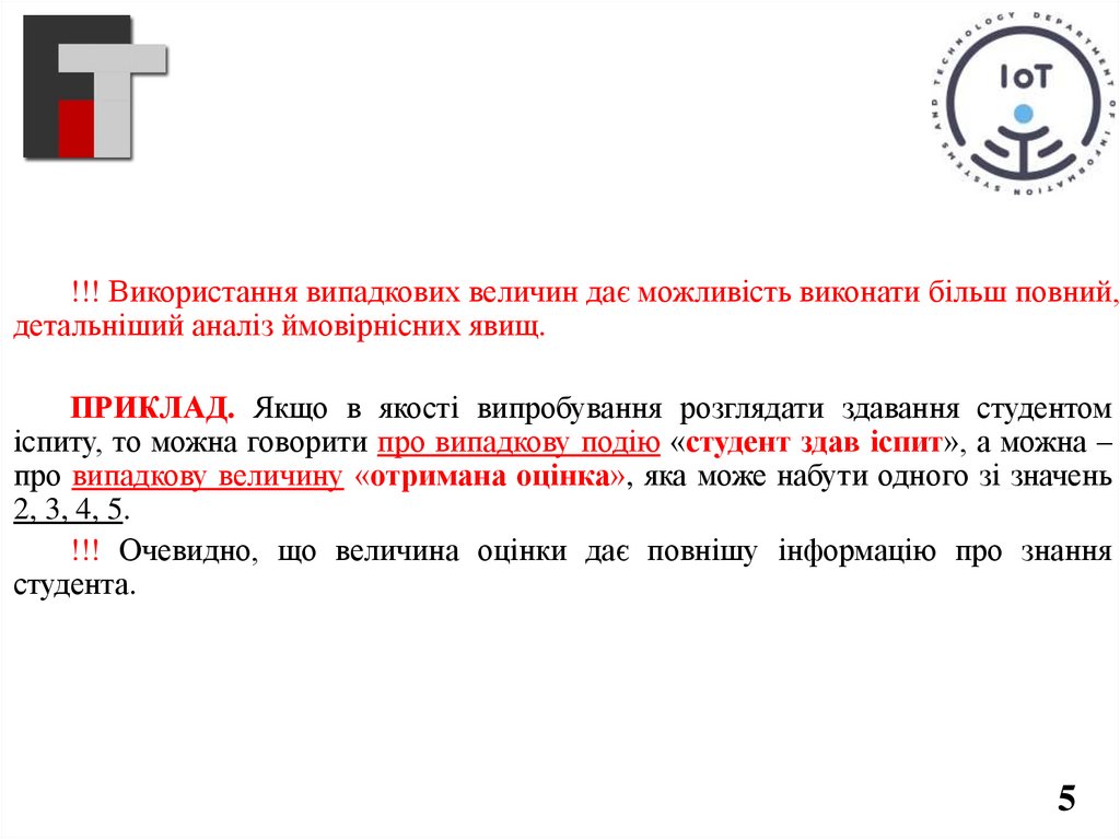 іспиту, то можна говорити про випадкову подію «студент здав іспит», а можна –