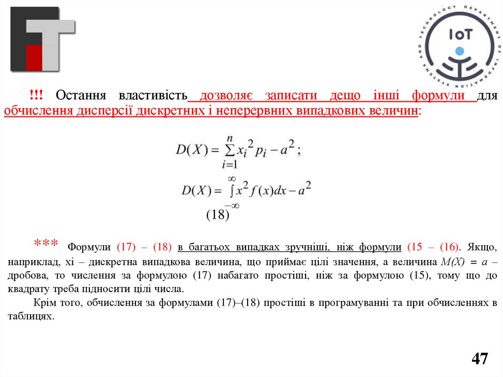!!! Наведені вище властивості дисперсії можуть бути поширені (з відповідною