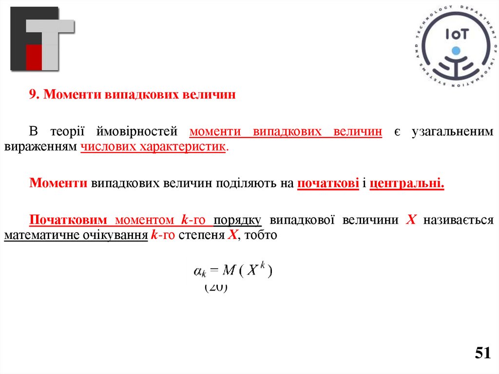 9. Моменти випадкових величинВ теорії ймовірностей моменти випадкових величин є узагальненим