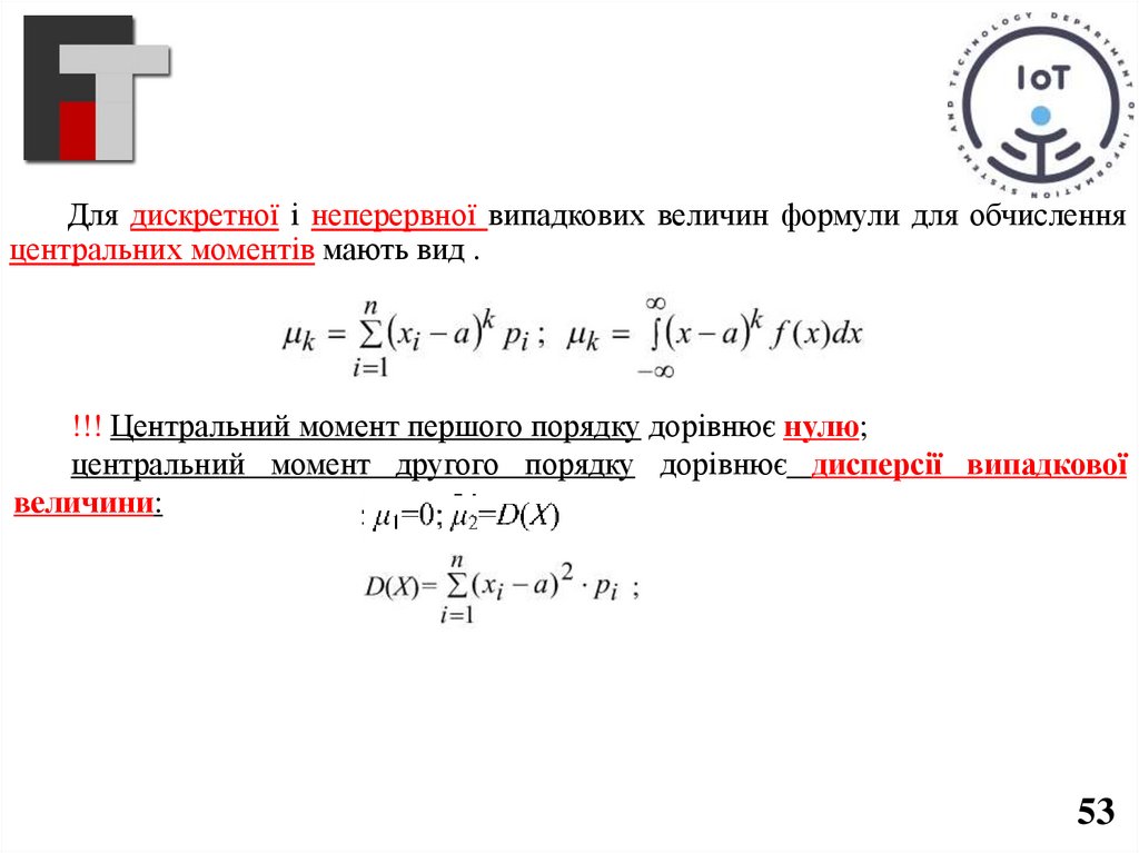 центральний момент другого порядку дорівнює дисперсії випадкової