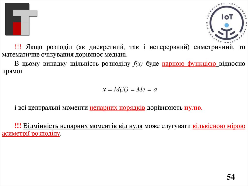 !!! Відмінність непарних моментів від нуля може слугувати кількісною мірою