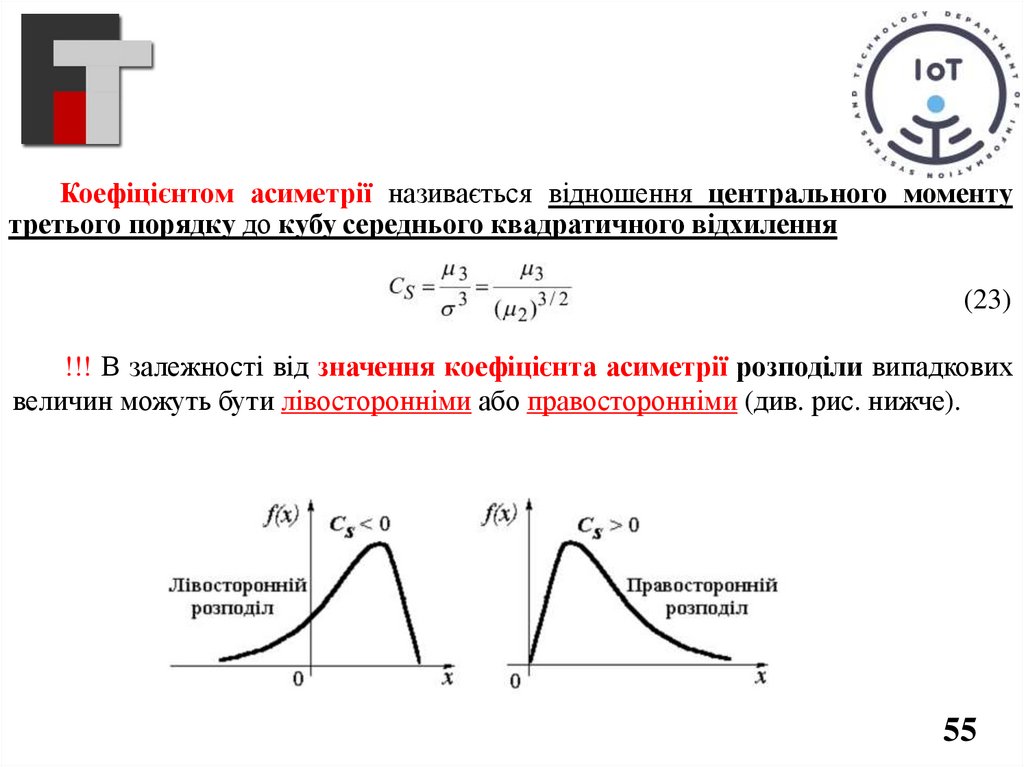 !!! В залежності від значення коефіцієнта асиметрії розподіли випадкових