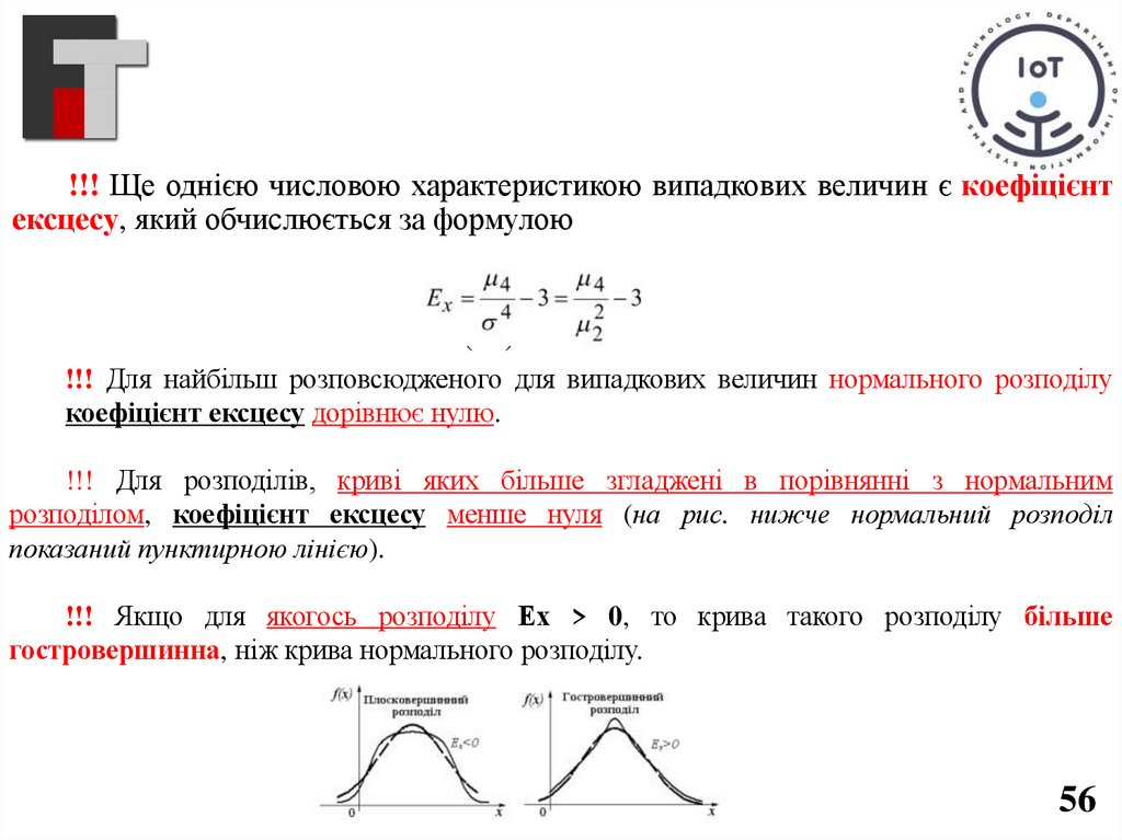 !!! Ще однією числовою характеристикою випадкових величин є коефіцієнтексцесу, який обчислюється за формулою