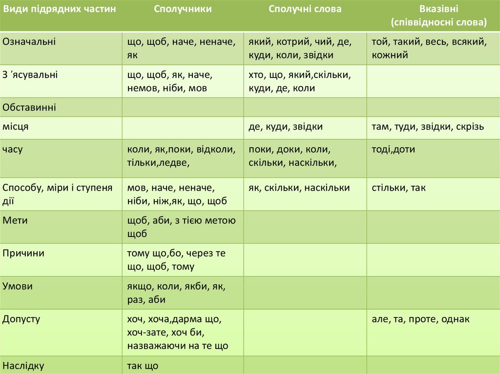 Види підрядних частинСполучники