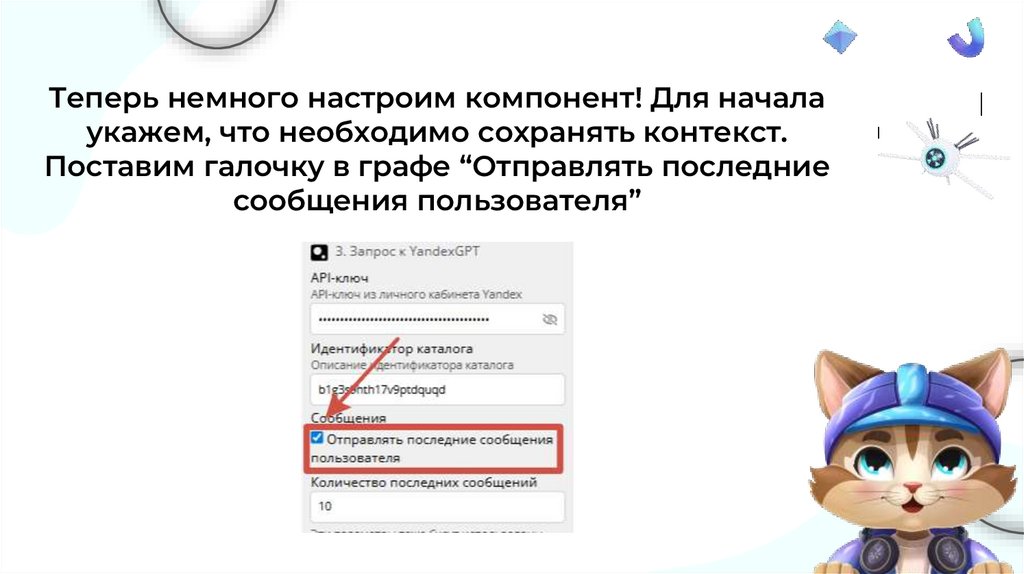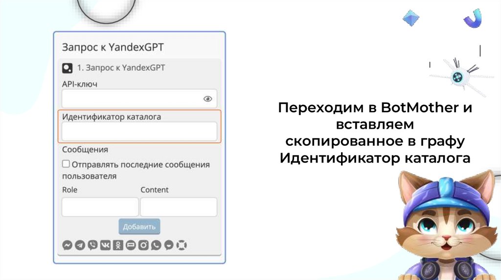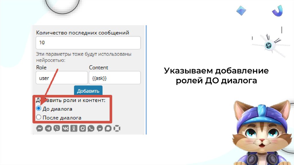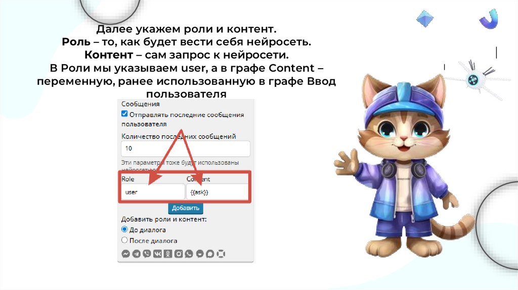 Далее укажем роли и контент.Роль – то, как будет вести себя нейросеть.