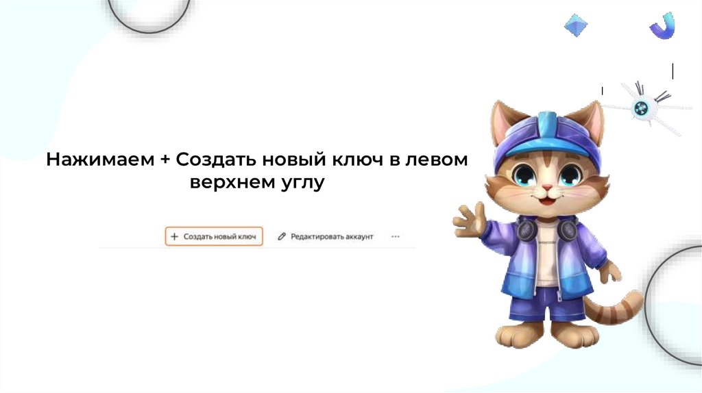 Нажимаем + Создать новый ключ в левомверхнем углу