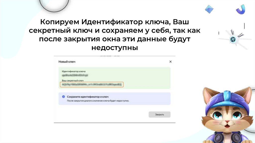 Копируем Идентификатор ключа, Вашсекретный ключ и сохраняем у себя, так как