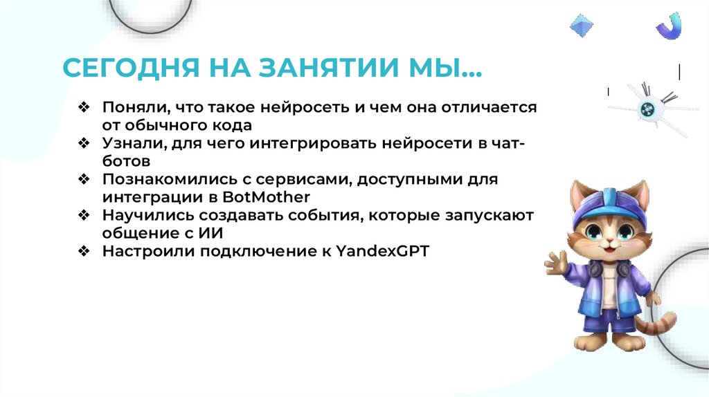 ❖ Узнали, для чего интегрировать нейросети в чатботов