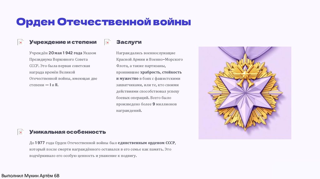 До 1 977 года Орден Отечественной войны был единственным орденом СССР,