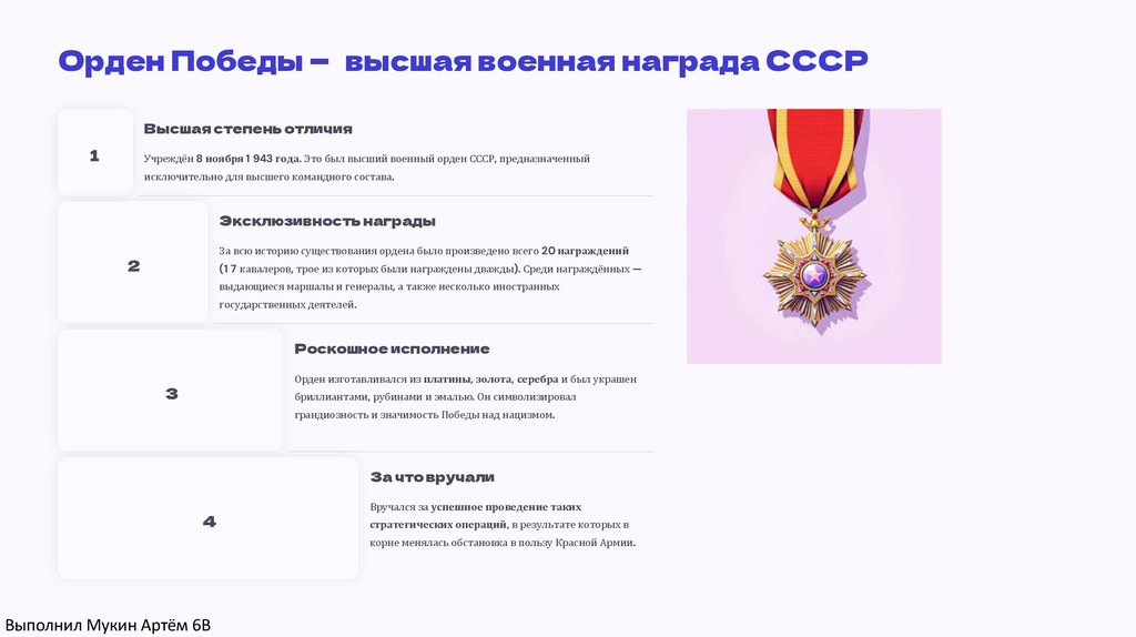 Орден Победы — высшая военная награда СССРВысшая степень отличия