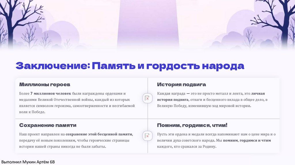 Пусть эти ордена и медали всегда напоминают нам о цене мира и о