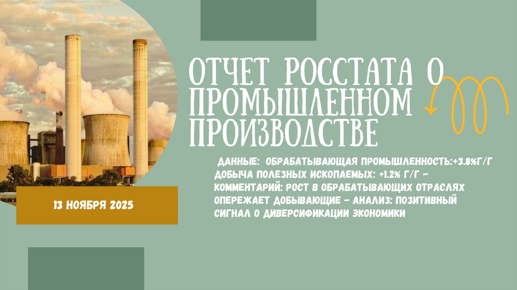 13 ноября 2025Данные: Обрабатывающая промышленность:+3.8%г/г