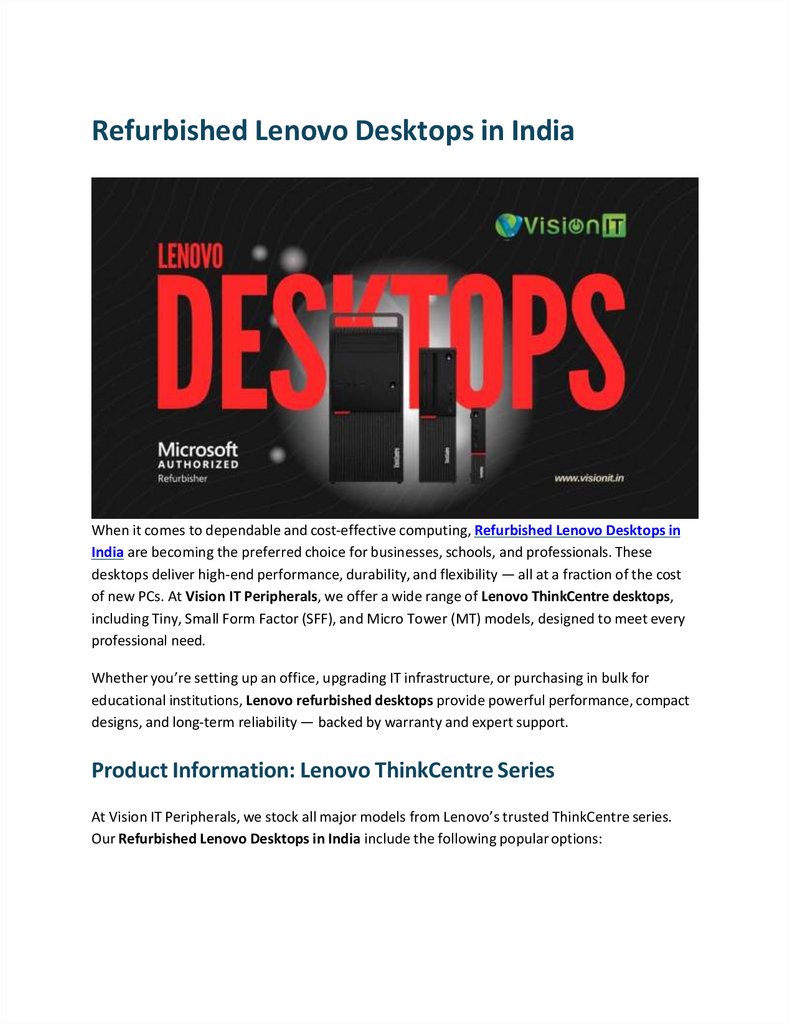 Refurbished Lenovo Desktops in IndiaWhen it comes to dependable and cost-effective computing, Refurbished Lenovo Desktops in