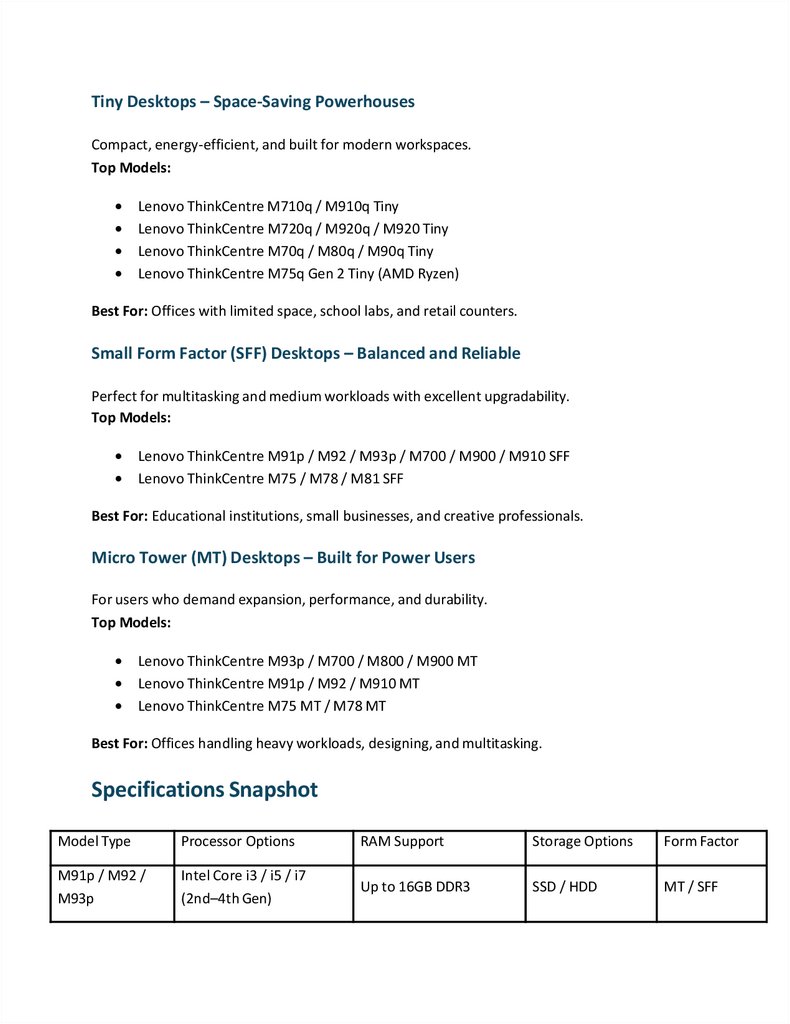including Tiny, Small Form Factor (SFF), and Micro Tower (MT) models, designed to meet every