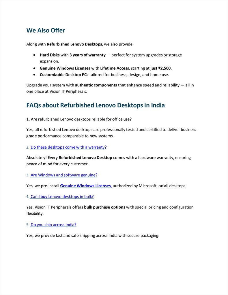 We Also OfferAlong with Refurbished Lenovo Desktops, we also provide:
