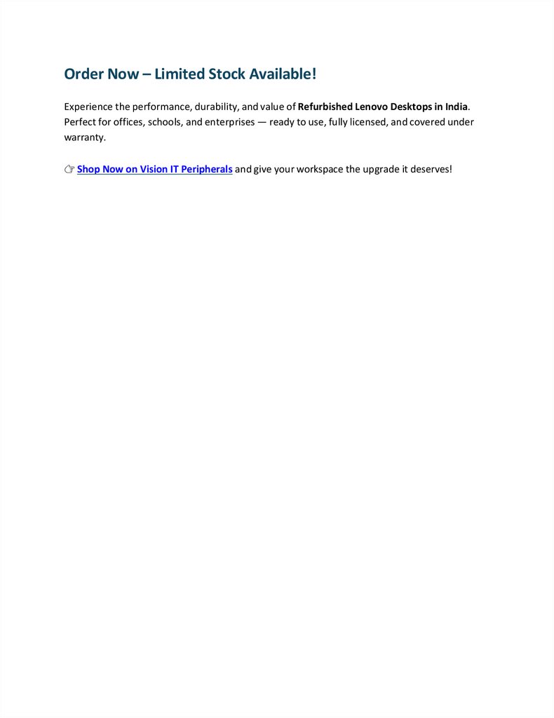 Order Now – Limited Stock Available!Experience the performance, durability, and value of Refurbished Lenovo Desktops in India.