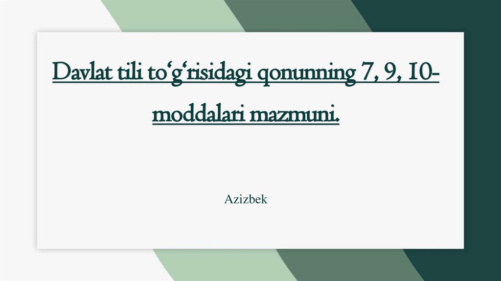 Davlat tili to‘g‘risidagi qonunning 7, 9, 10moddalari mazmuni.Azizbek