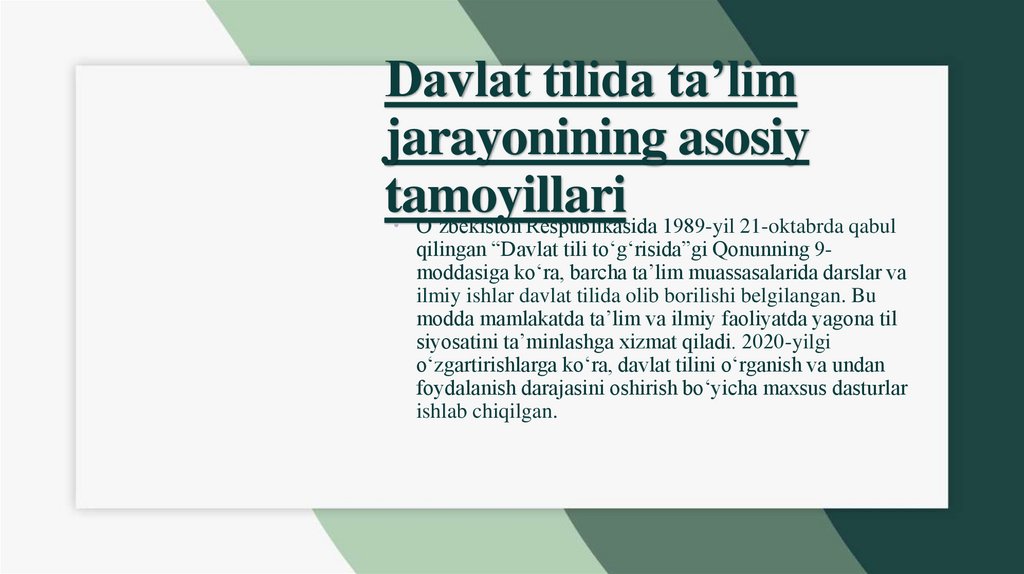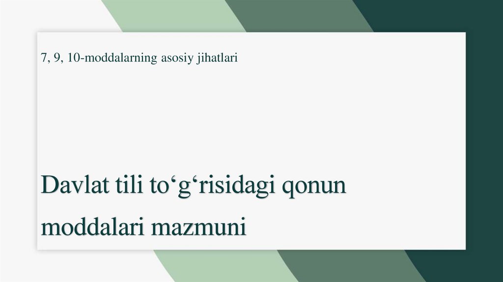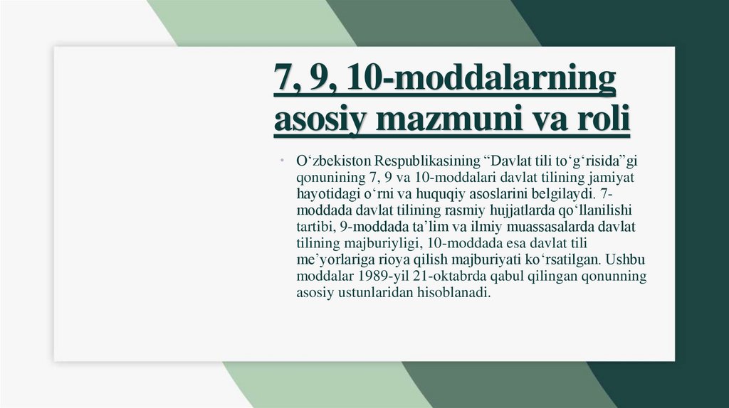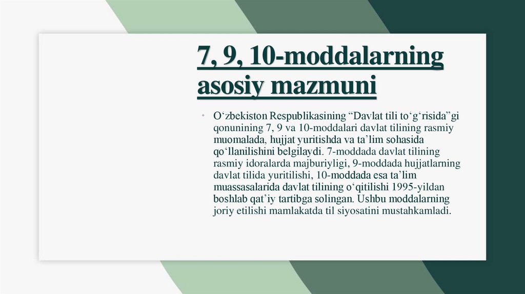 7, 9, 10-moddalarning asosiy jihatlariDavlat tili to‘g‘risidagi qonun
