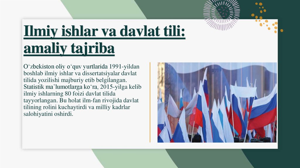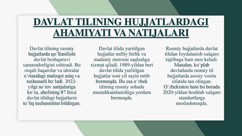 DAVLAT TILINING HUJJATLARDAGIAHAMIYATI VA NATIJALARI