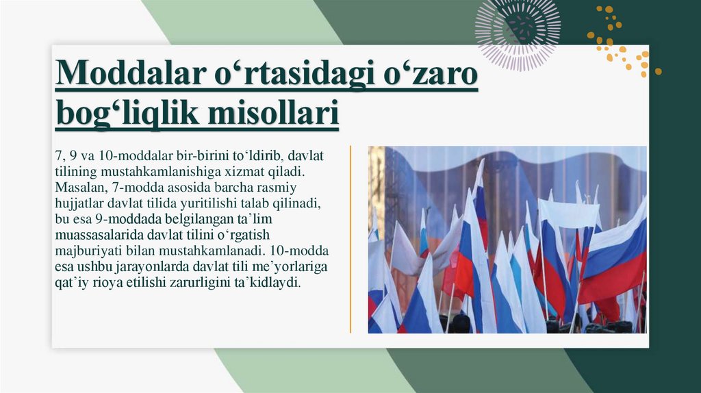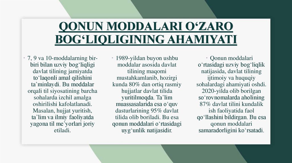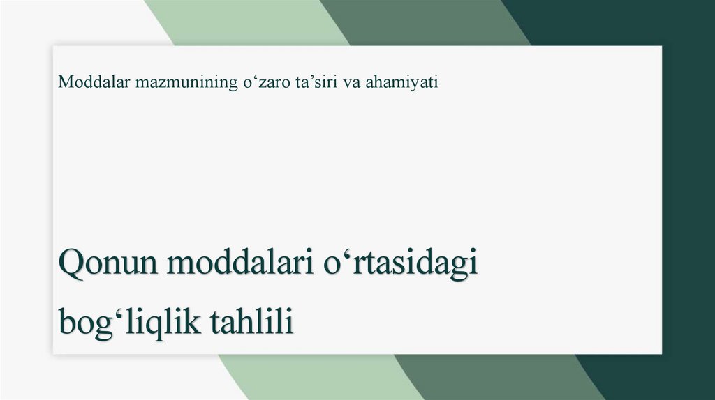 • Qonun moddalari o‘rtasidagi o‘zaro bog‘liqlik