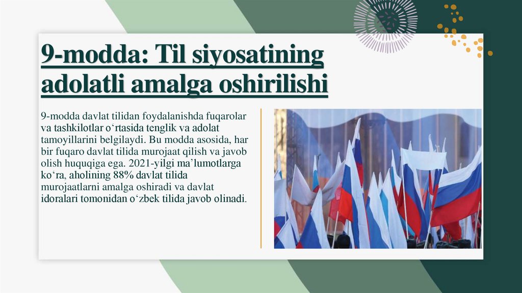 9-modda: Til siyosatiningadolatli amalga oshirilishi