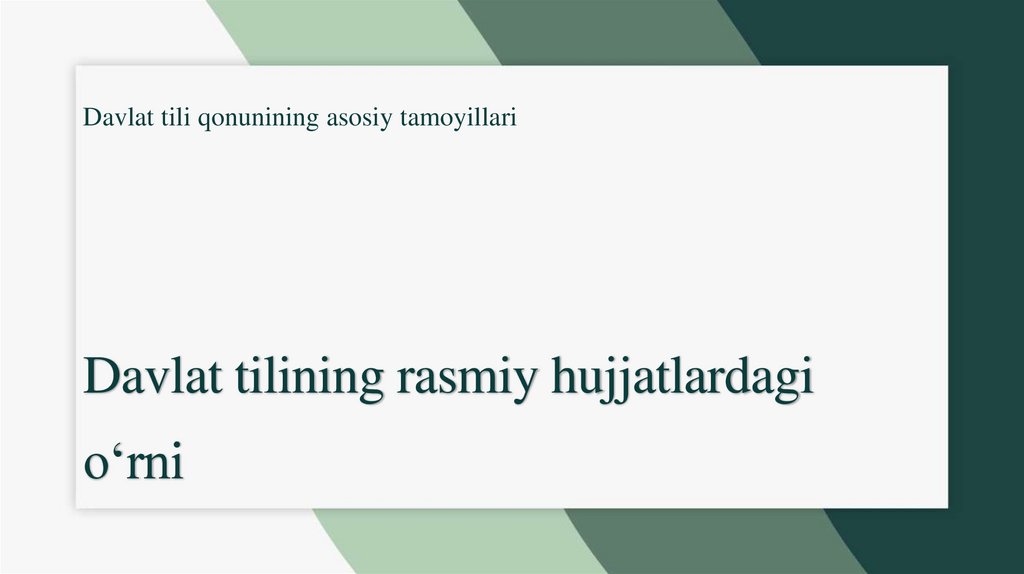 Davlat tili qonunining asosiy tamoyillariDavlat tilining rasmiy hujjatlardagi