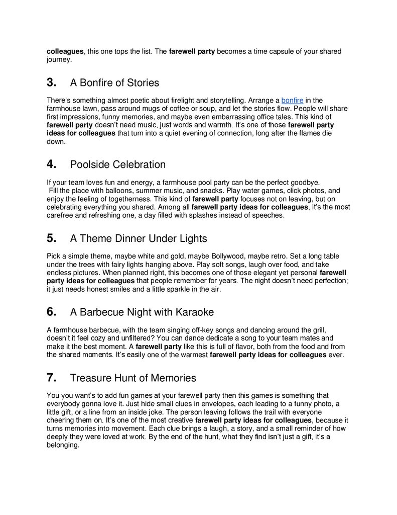 enjoy fun and laughter, a pool party or treasure hunt works better. The best farewell party